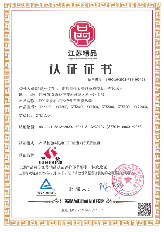 優(yōu)質(zhì)產(chǎn)品是企業(yè)的核心,公司石墨設(shè)備標(biāo)準(zhǔn)化建設(shè)獲得“江蘇省戰(zhàn)略性新興產(chǎn)業(yè)標(biāo)準(zhǔn)化試點(diǎn)項(xiàng)目”。產(chǎn)品標(biāo)準(zhǔn)化夯實(shí)質(zhì)量品牌發(fā)展,公司被列入江蘇"旗艦領(lǐng)航”重點(diǎn)培育計(jì)劃。