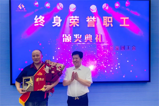 三圣奮斗史中閃耀著這樣一顆璀璨之星,他以堅(jiān)定的信念和不懈的努力,登上榮譽(yù)巔峰,成為開發(fā)區(qū)當(dāng)之無(wú)愧的一名“金牌員工”,并被三圣集團(tuán)董事會(huì)、三圣工會(huì)授予“終身榮譽(yù)職工”的光榮稱號(hào)。