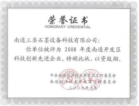 我公司被南通經濟技術開發(fā)區(qū)評為2008年度技術創(chuàng)新先進單位
