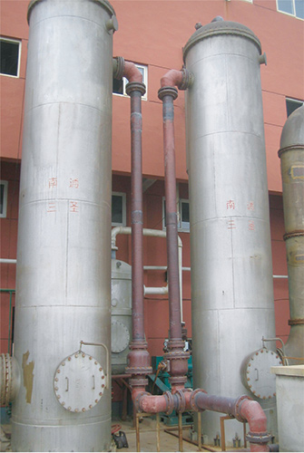 代替?zhèn)鹘y(tǒng)的鉛、不銹鋼盤(pán)管式換熱器,本設(shè)備材質(zhì)為不透性石墨、較鉛、不銹鋼有良好的耐腐蝕性